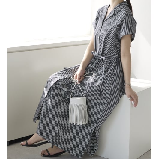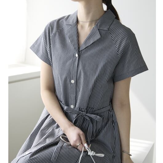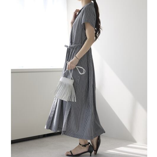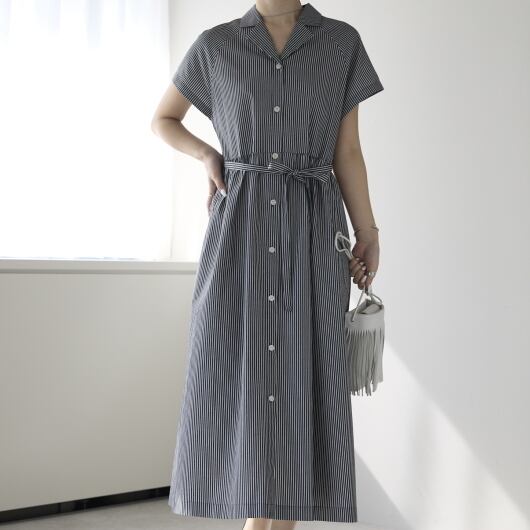 ウエストマークデザインのトレンド感のあるストライプワンピースを、綿100%の生地で仕上げました。