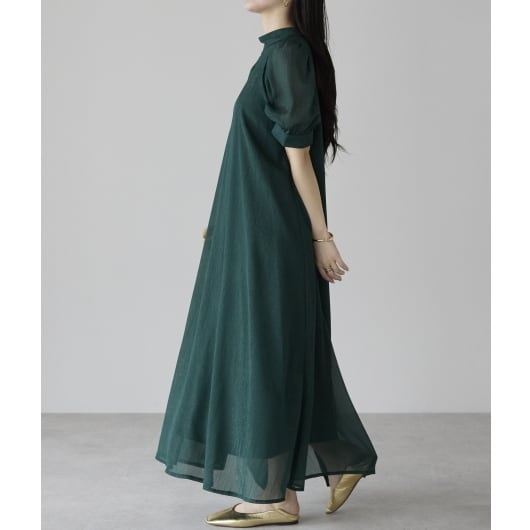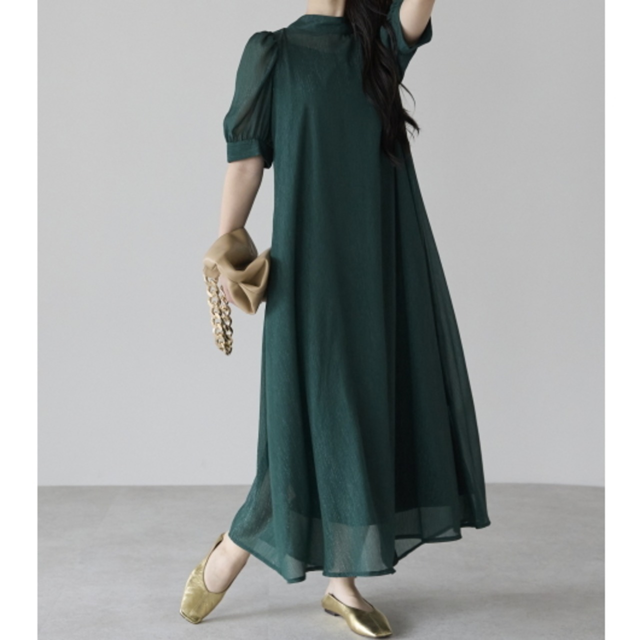 うっすらラメ生地が美しく、気になるボディラインもAラインのシルエットで大人の女性らしさが際立つスタイルに仕上げてくれます。