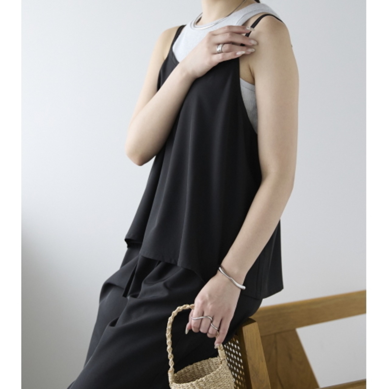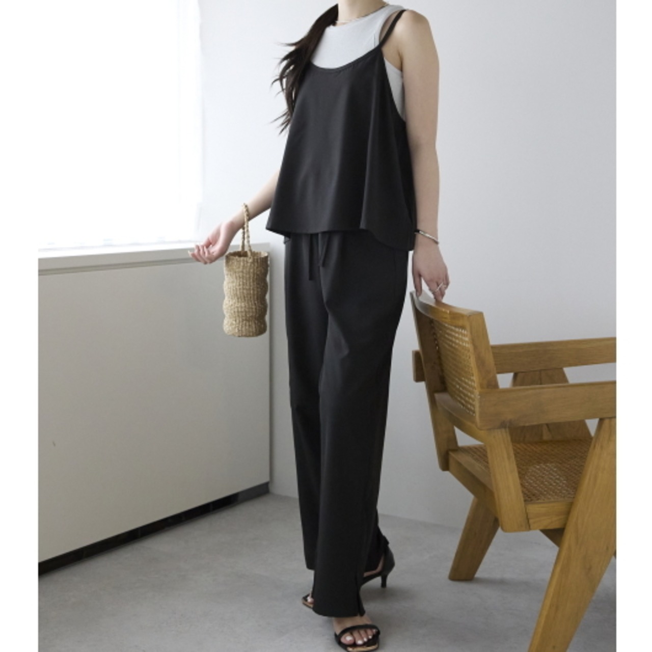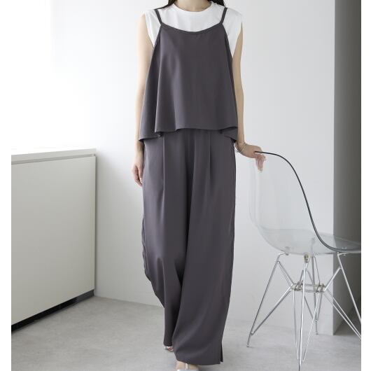 トレンド感のあるミニマムなキャミとワイドパンツがセットをリリースしました。