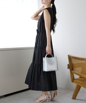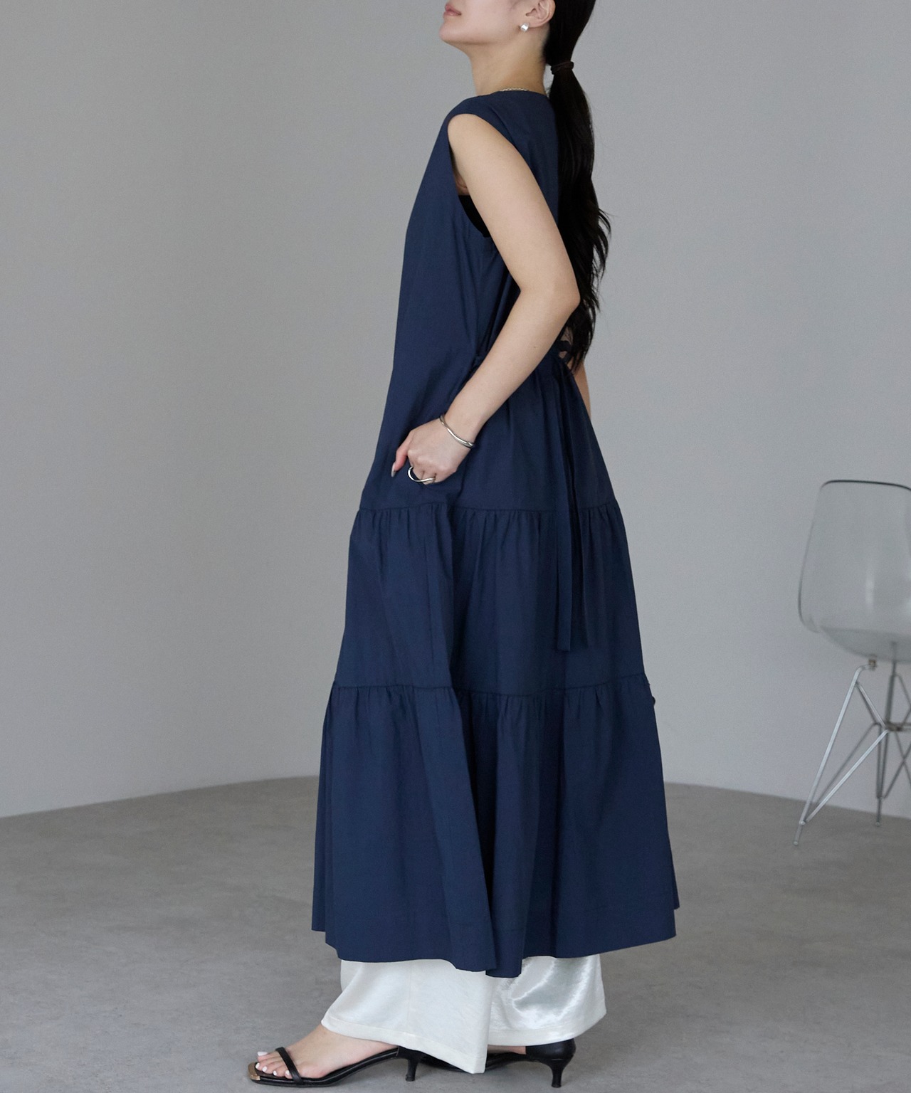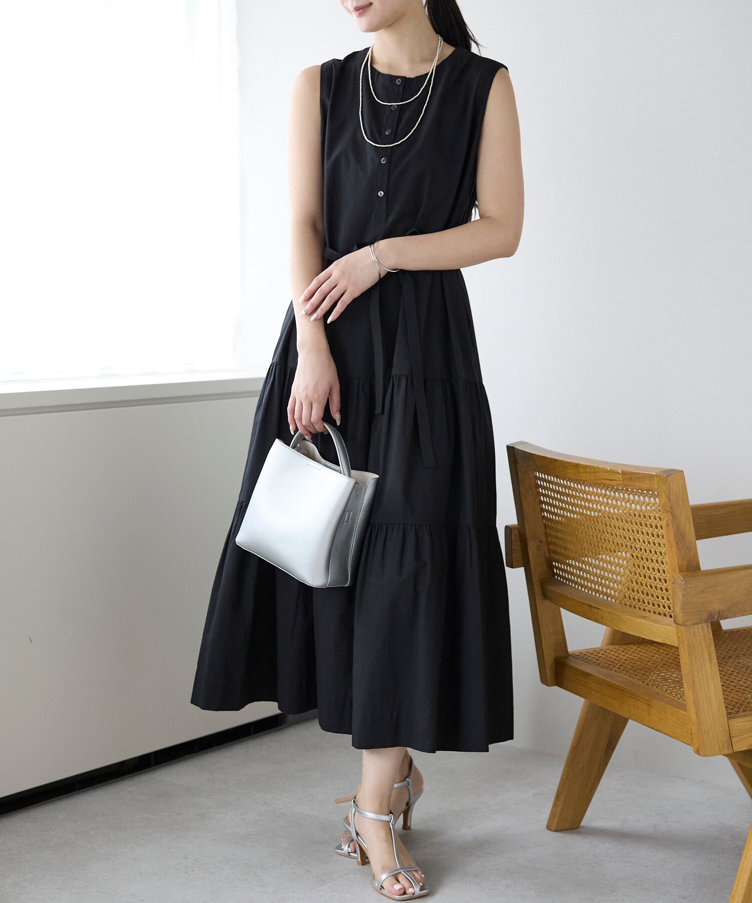 ワントーンで大人っぽく、シンプルなティアードワンピースですが華やかさがあります。
