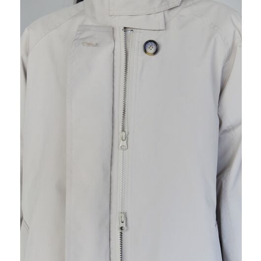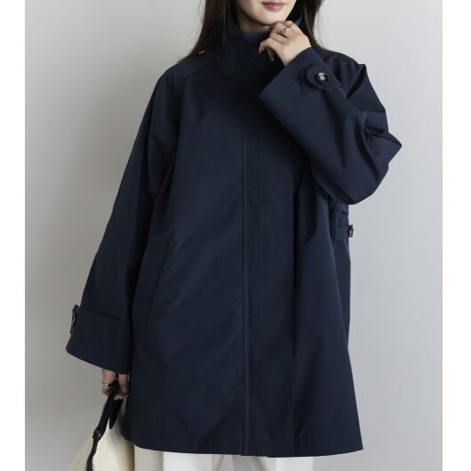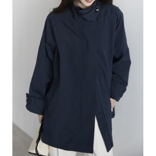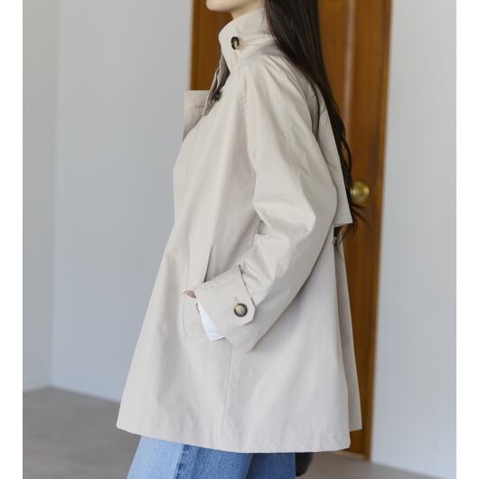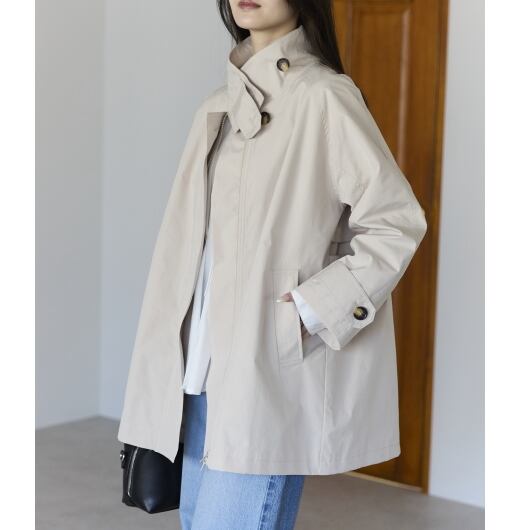 春先から長く活躍する、スタンドカラーのミドル丈スプリングコート。