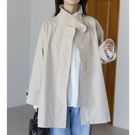 さっと羽織るだけで上品に決まり、通勤から休日まで幅広く使える一着です。首元をすっきり見せるスタンドカラーは、きちんと感がありながらも堅すぎず、
