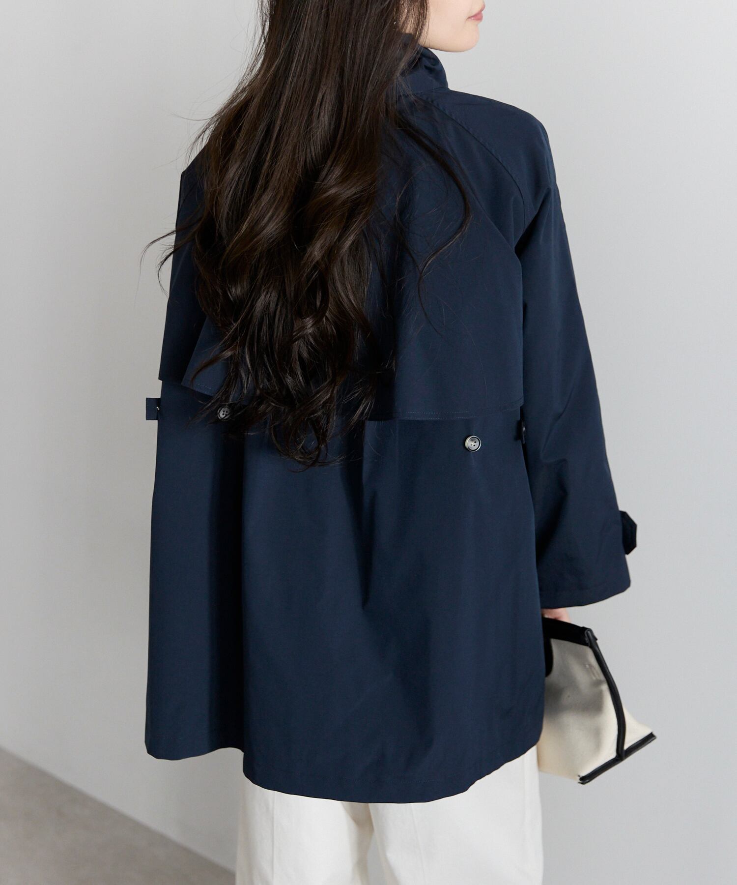ミドル丈(着丈約80cm)は、パンツ・スカートどちらにも合わせやすく、バランス良く着こなせます。