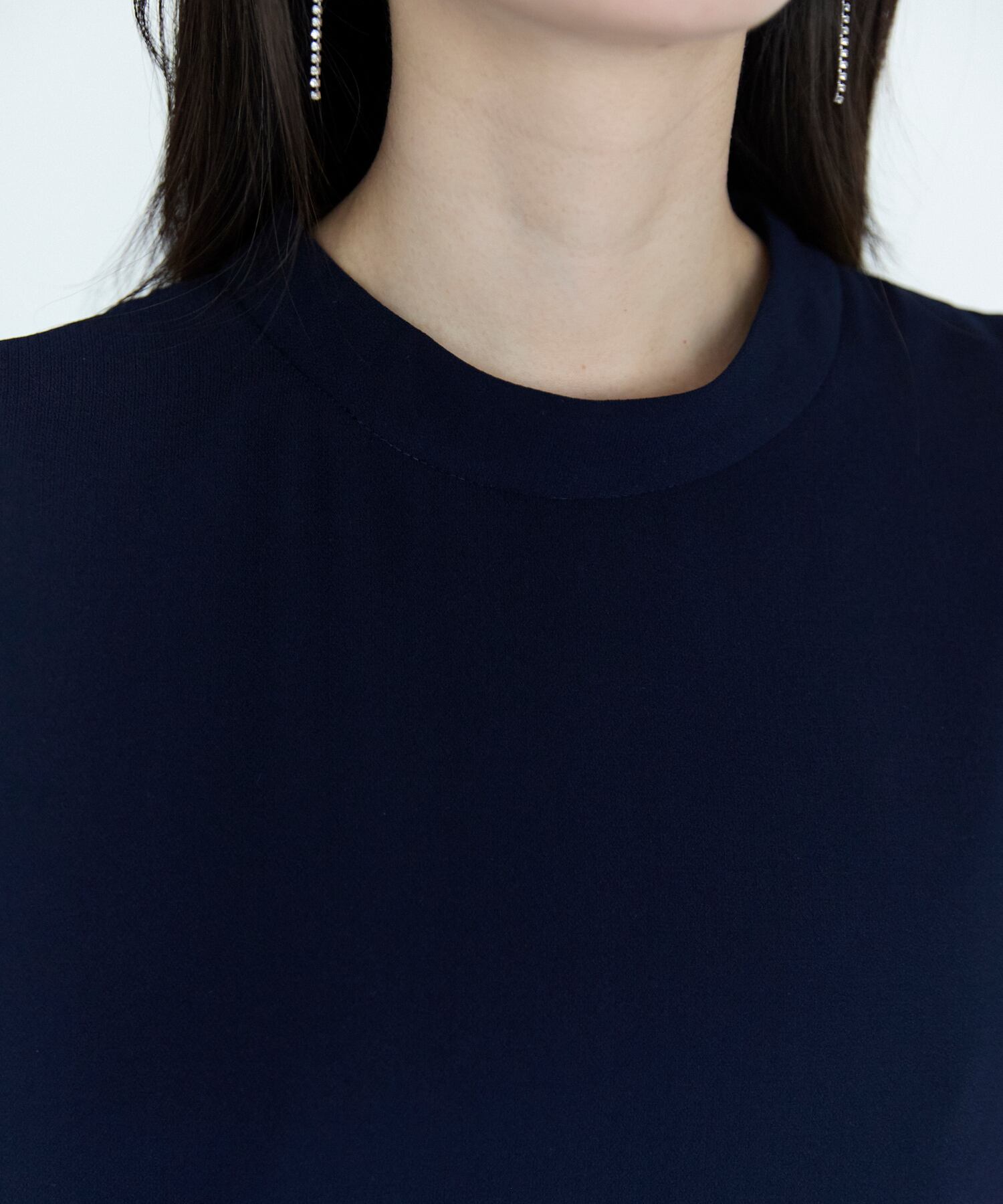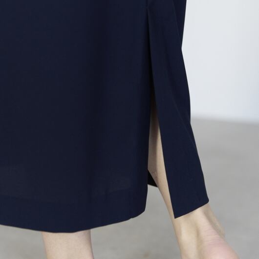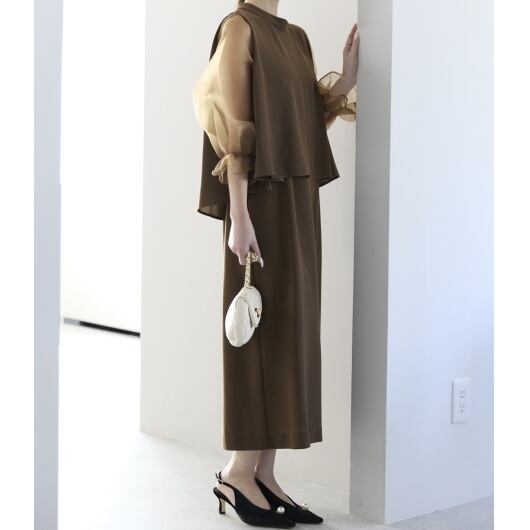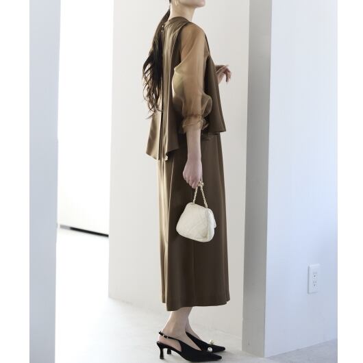 身頃は落ち感のある素材で、体のラインを拾いにくく、上品なシルエットに。