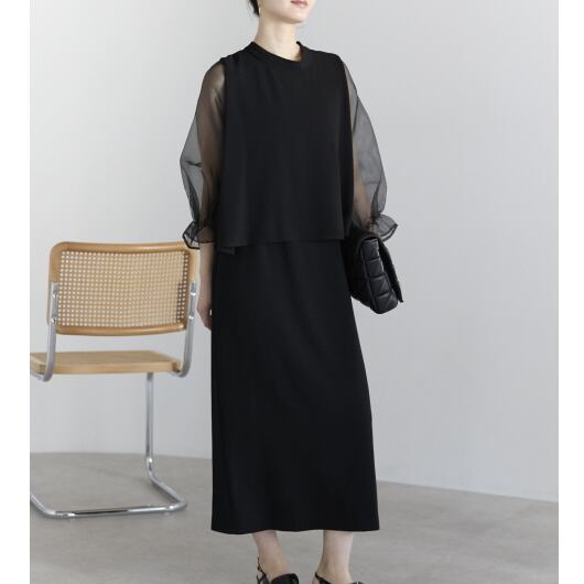 セットアップは好きだけど、着るのが面倒…そんな方にもおすすめの、きれい見えと着心地を兼ね備えたドレスです。