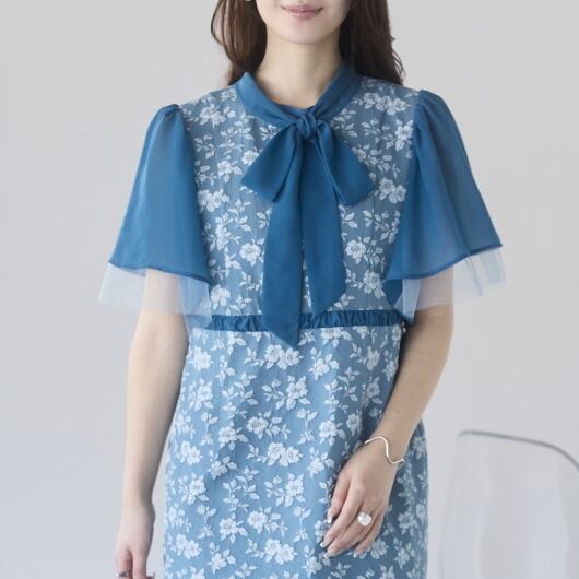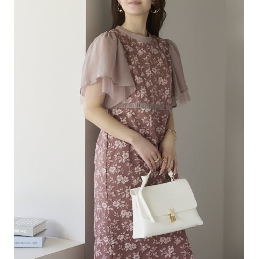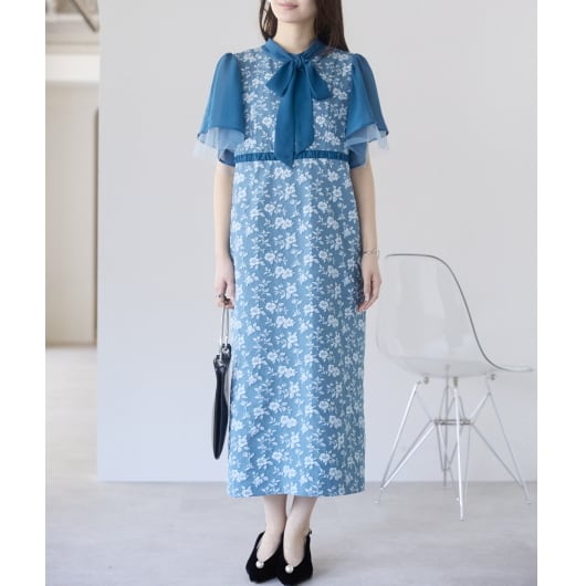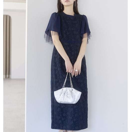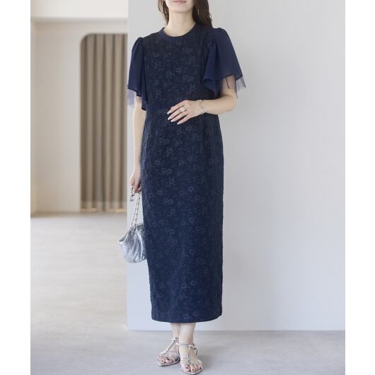 ダブルフレアースリーブドレス 花柄ジャカード (11292)