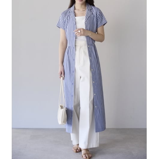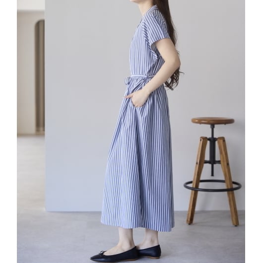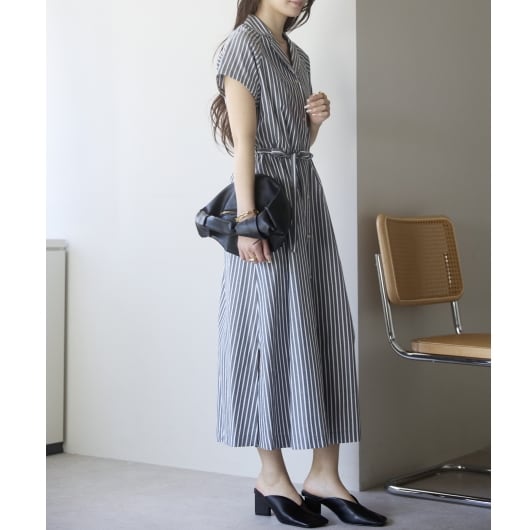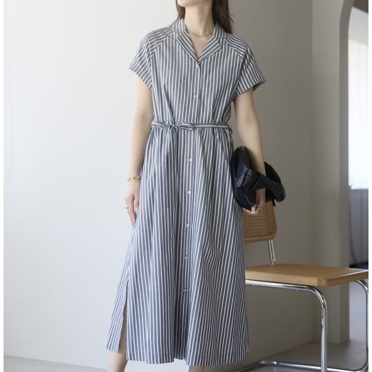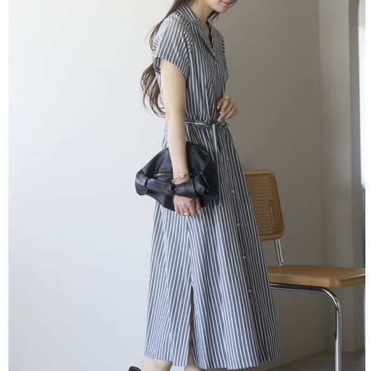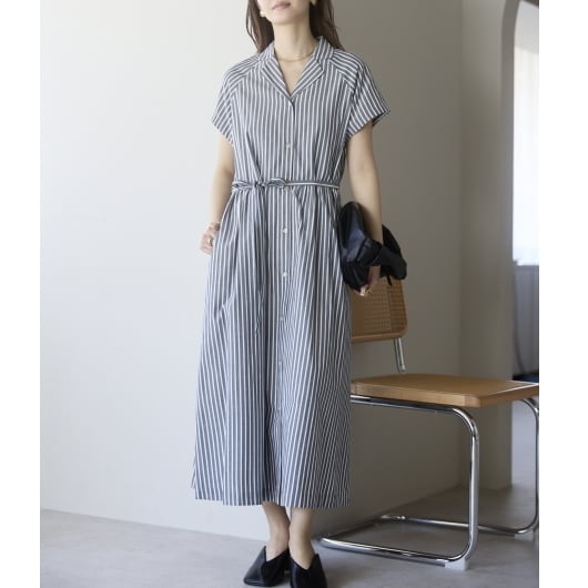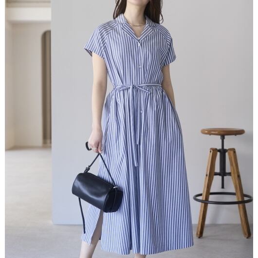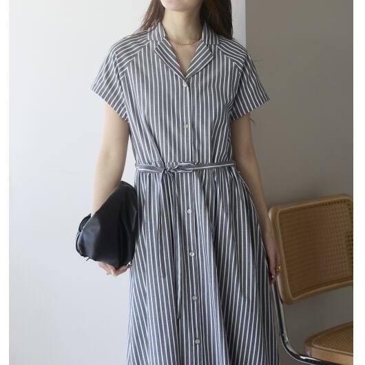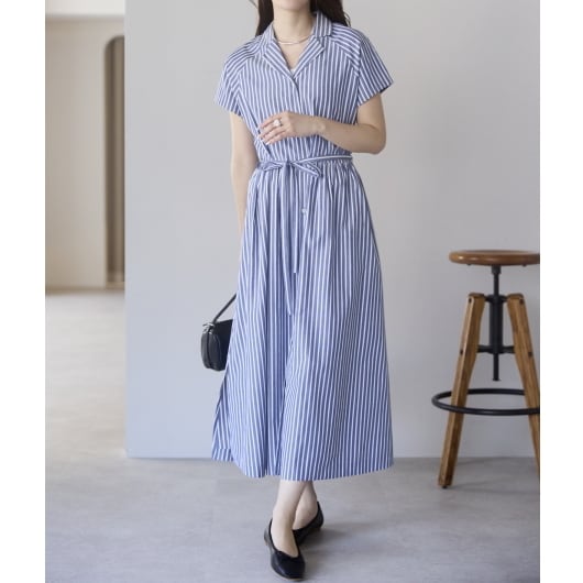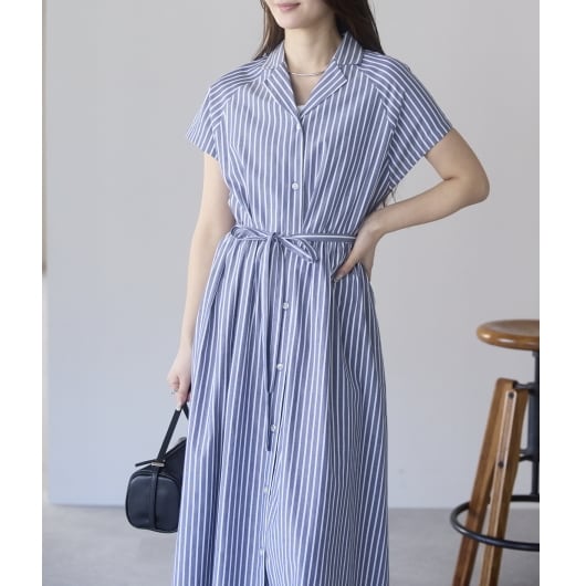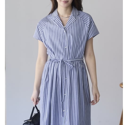 ストライプオープンカラーワンピース(11298)