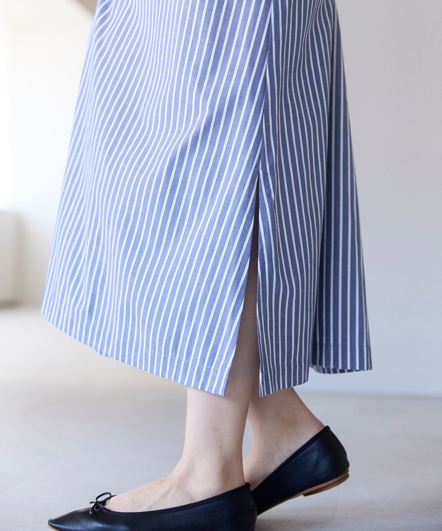 スカート部分は程よいフレア感で、気になる腰まわりやヒップラインをさりげなくカバーしてくれる。